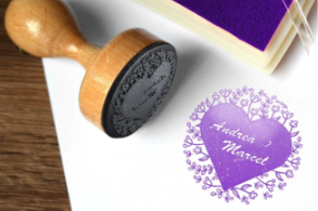 A gumis nyomópárnából és fából készült fogantyúból álló esküvői bélyegző egyedi és egyben elegáns eszköze is az esküvői előkészületeknek. A bélyegzőhöz bélyegzőpárna is rendelhető az Ön által választott színben, hogy ezzel is hangolódni tudjunk az esküvő színvilágához.