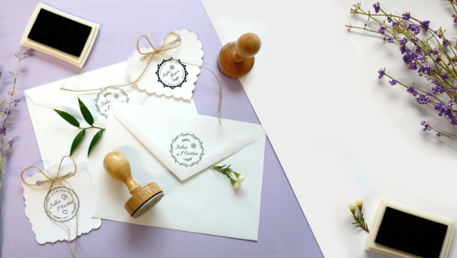 Az esküvő és mindaz, ami vele összefügg életünk egyik legszebb és legegyedibb eseménye is egyben. Ha már elkészültek az esküvői meghívók tegye még eredetibbé a hozzá illő borítékokat azok lebélyegzésével. A bélyegző tartalmazhatja a neveket és az esküvő dátumát.